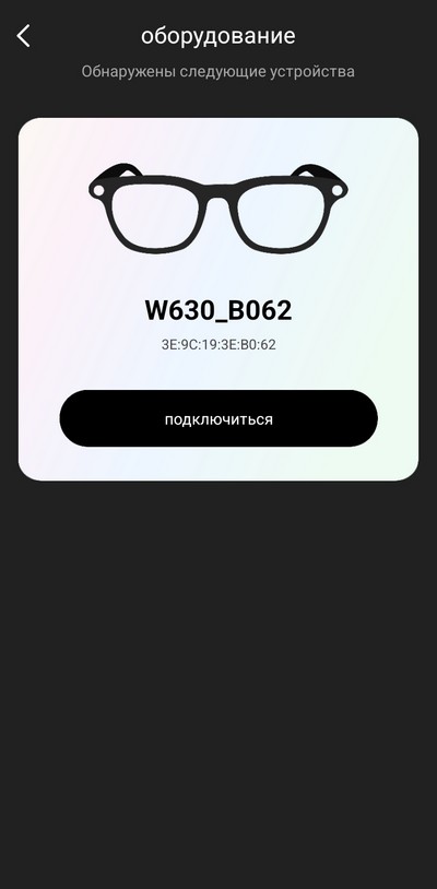 После запуска приложение само обнаруживает очки и подключает их.