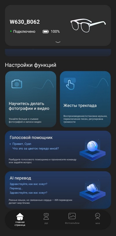 Очками поддерживаются различные языки, включая русский, умный помощник также может общаться на русском.
