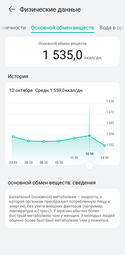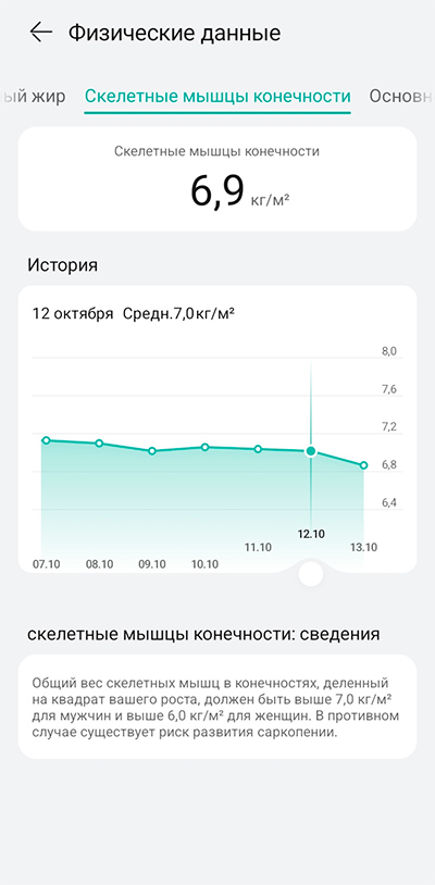 По каждому из параметров можно вызвать историю измерений (она хранится в облаке), и для многих параметров есть объяснения того, в каких границах они должны находиться.