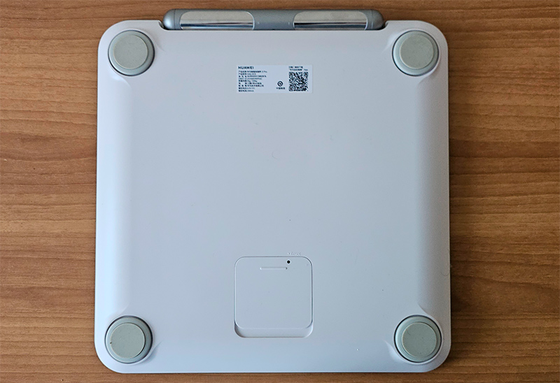 На нижней крышке весов, выполненной из матового пластика, находятся пластиковые ножки с силиконовыми насадками, имеющие определенную степень свободы, позволяющей весам устойчиво стоять на поверхности и не скользить. Там же располагается отсек для батареек. Трех батареек ААА при ежедневном измерении должно хватать примерно на год.