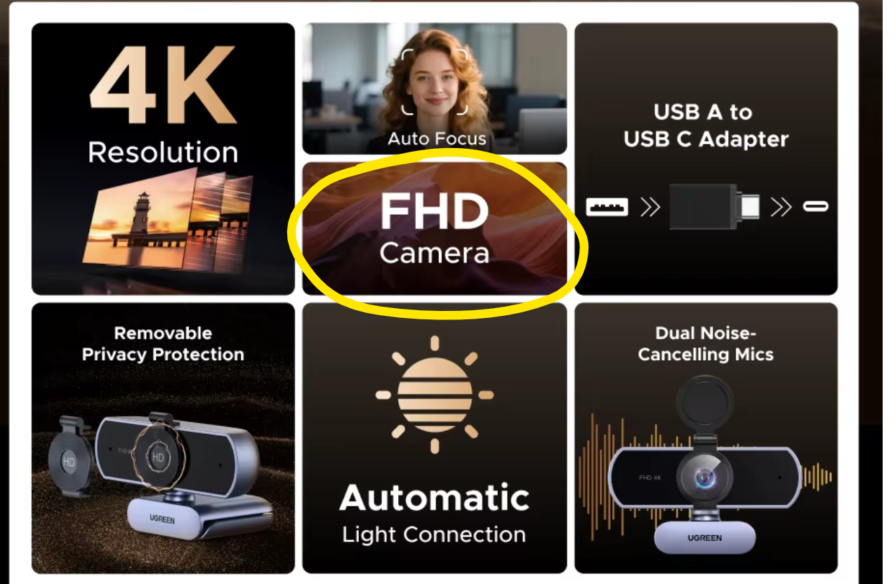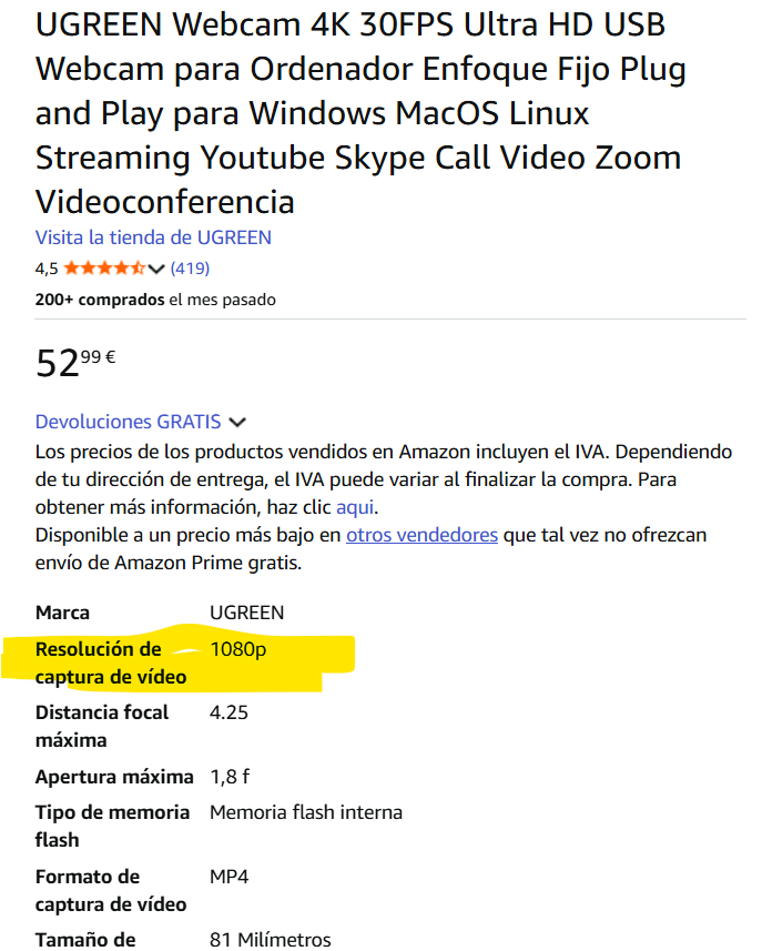 На Амазоне как раз в характеристиках постоянно всякую пургу пишут. На Алиэкспресс часто продают две модели этой камеры - FullHD и 4K. FullHD дешевле. И в заголовке они и пишут - UGREEN 4K FullHD.