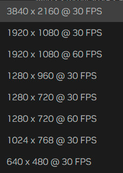 Максимальное разрешение, поддерживаемой камерой, 3840 х 2160 @ 30 FPS. Разрешение FullHD поддерживает 60 FPS.