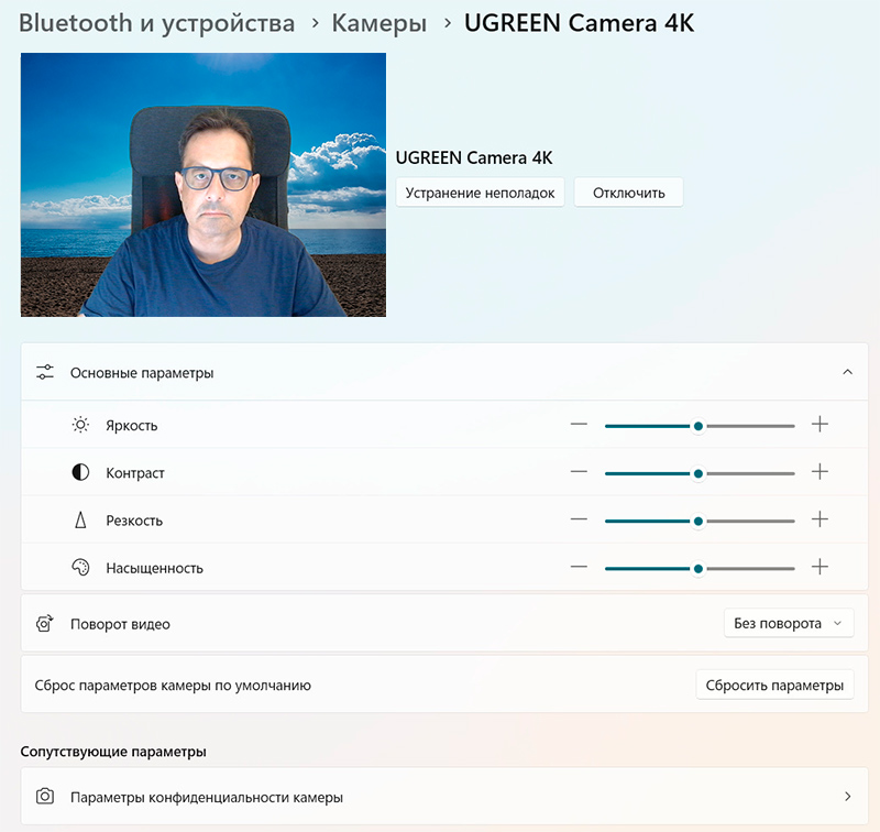 Поэтому ее можно настраивать в Zoom, Google Meet, FaceTime, NVidia Broadcast - где угодно. Ну и, например, в самой системе Windows есть возможность настраивать подключенную камеру.