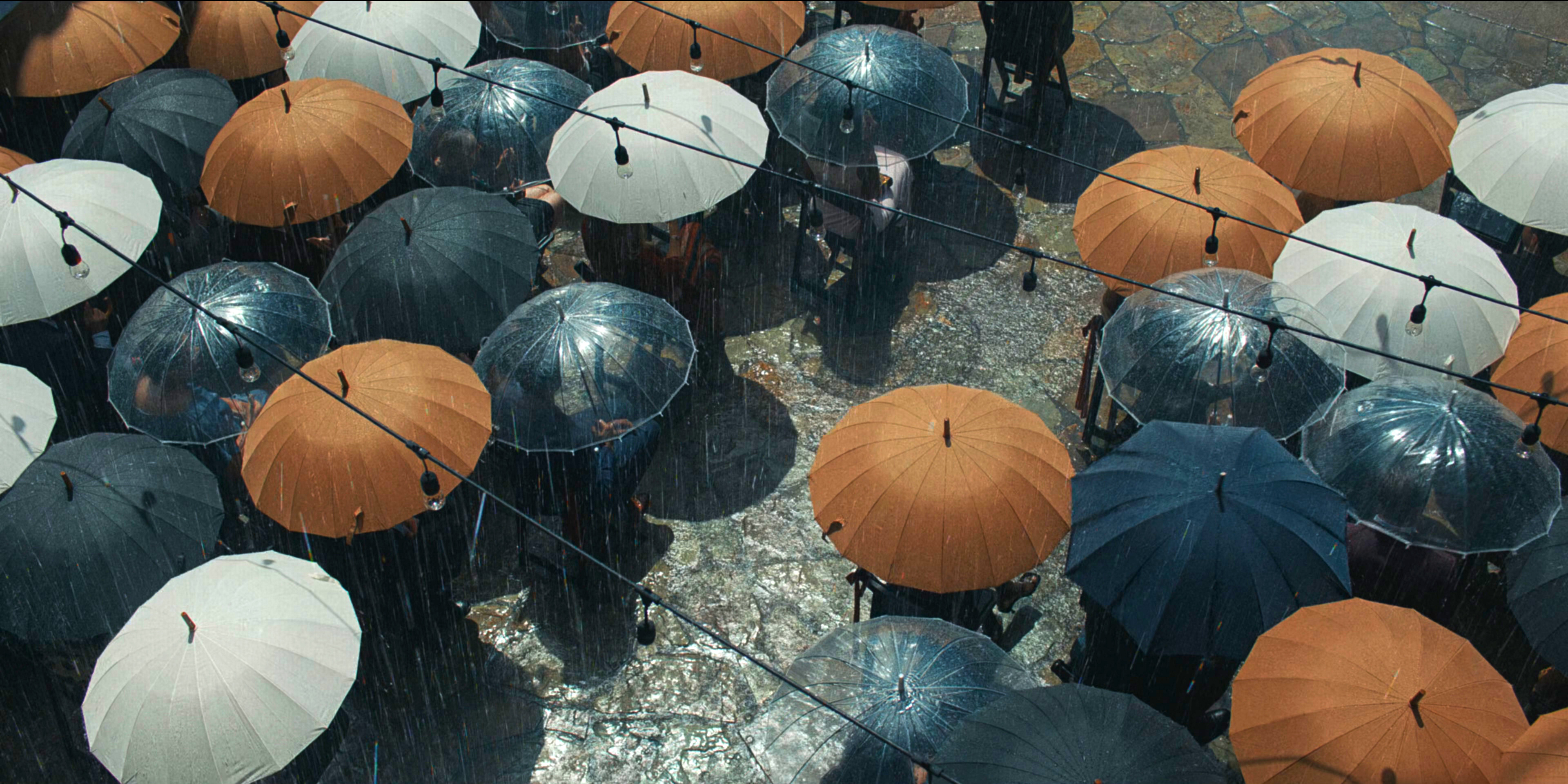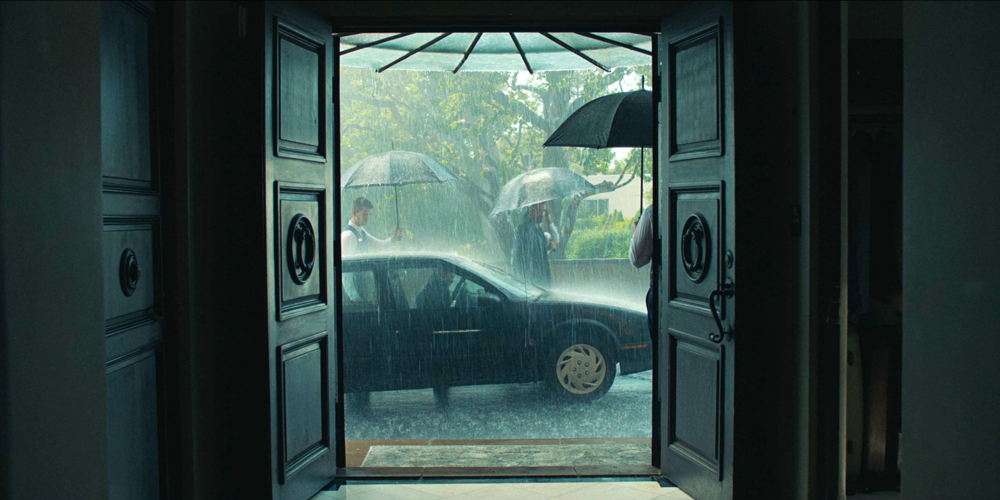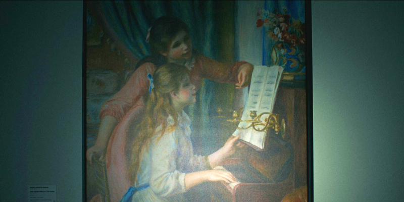 многочисленные отсылки к Хаяо Миядзаки - ярко-желтые и красные зонты, одинокая дверь посреди густого леса, - это сделано хорошо. Плюс это еще сопровождается музыкой композитора Дзе Хисаиси, который писал музыку к большинству анимаций Миядзаки.