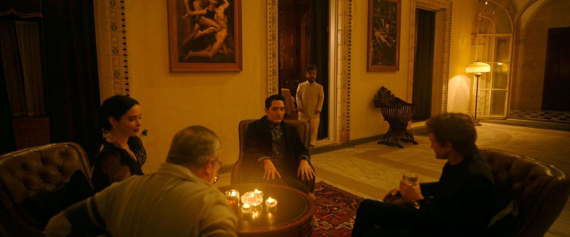 Они все сыграли замечательно, но там самый блеск - это Питер Динклейдж и Ума Турман. Леон - миллиардер, для которого практически нет ничего невозможного. Он одержим серийными убийцами и всем, что с ними связано, но вместе с тем ему нравится проявлять свою власть над этими людьми. А они очень ценят его расположение, тем более что Леон хорошо платит за трофеи. И они, в общем-то, понимают, что выхода из этого Клуба - нет. Леон не простит такое неуважение.