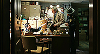 И здесь снова - совершенно новый стиль. Первый фильм был вдохновлен произведениями Агаты Кристи, второй - детективной картиной "Последний круиз на яхте «Шейла»", а новый фильм явно вдохновлен "Убийством на улице Морг" Эдгара Аллана По, а также известным мастером "невозможных преступлений" (убийств в запертых комнатах, в запечатанных бетонных блоках) Джона Диксона Карра.