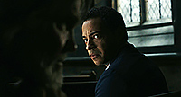 Здесь - новый образ, в том числе и чисто внешне: старомодная прическа и старомодная манера одеваться, сам Бланк - самоуверен, ироничность присутствует, но достаточно приглушенно, также он прямо заявляет Джаду о своем атеизме. И там идет увлекательный детектив в стиле whodunit (сокращение от "Who done it", "Кто это сделал"), где основная задача - найти истинного убийцу, а среди подозреваемых, кроме самого очевидного - отца Джада Даплентиси, - весь кружок прихожан, фанатов монсеньера, фанатичка Марта, да еще и садовник Самсон Холт (Томас Хейден Черч): а чем, скажите на милость, садовник хуже дворецкого?