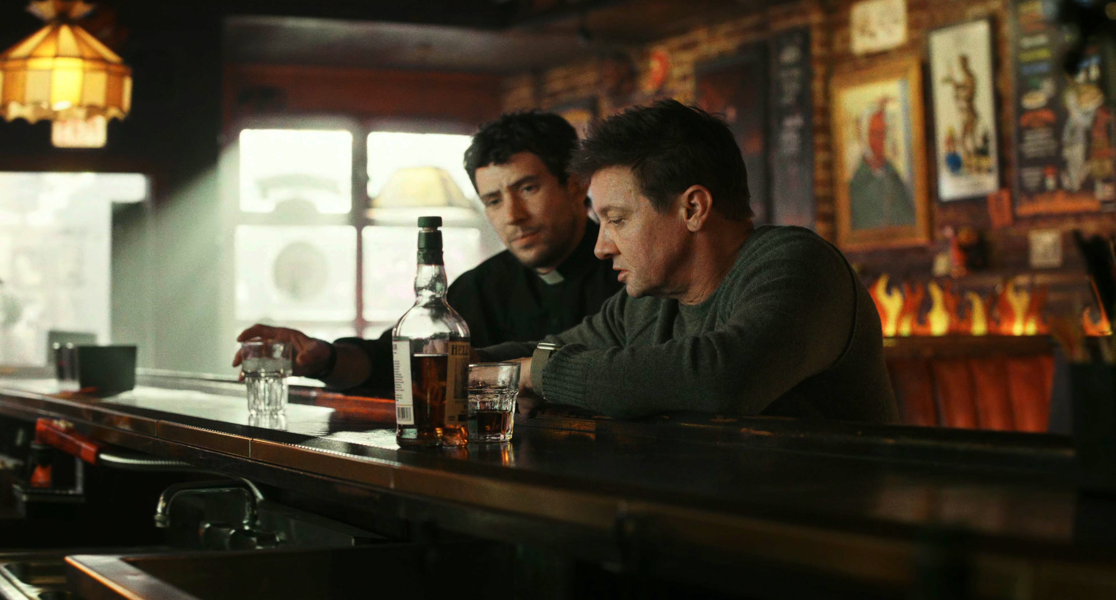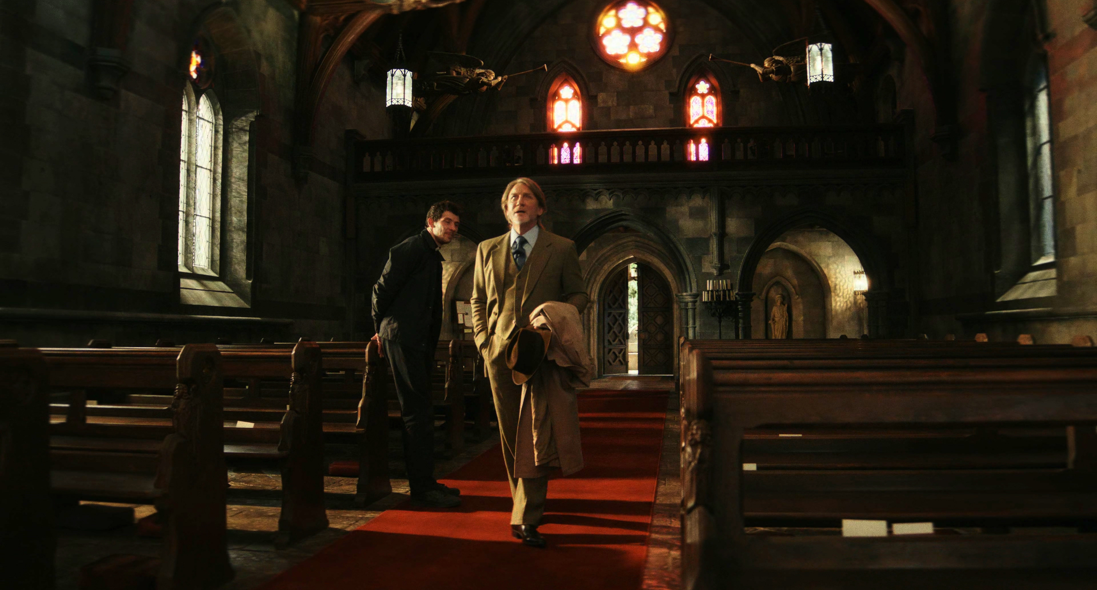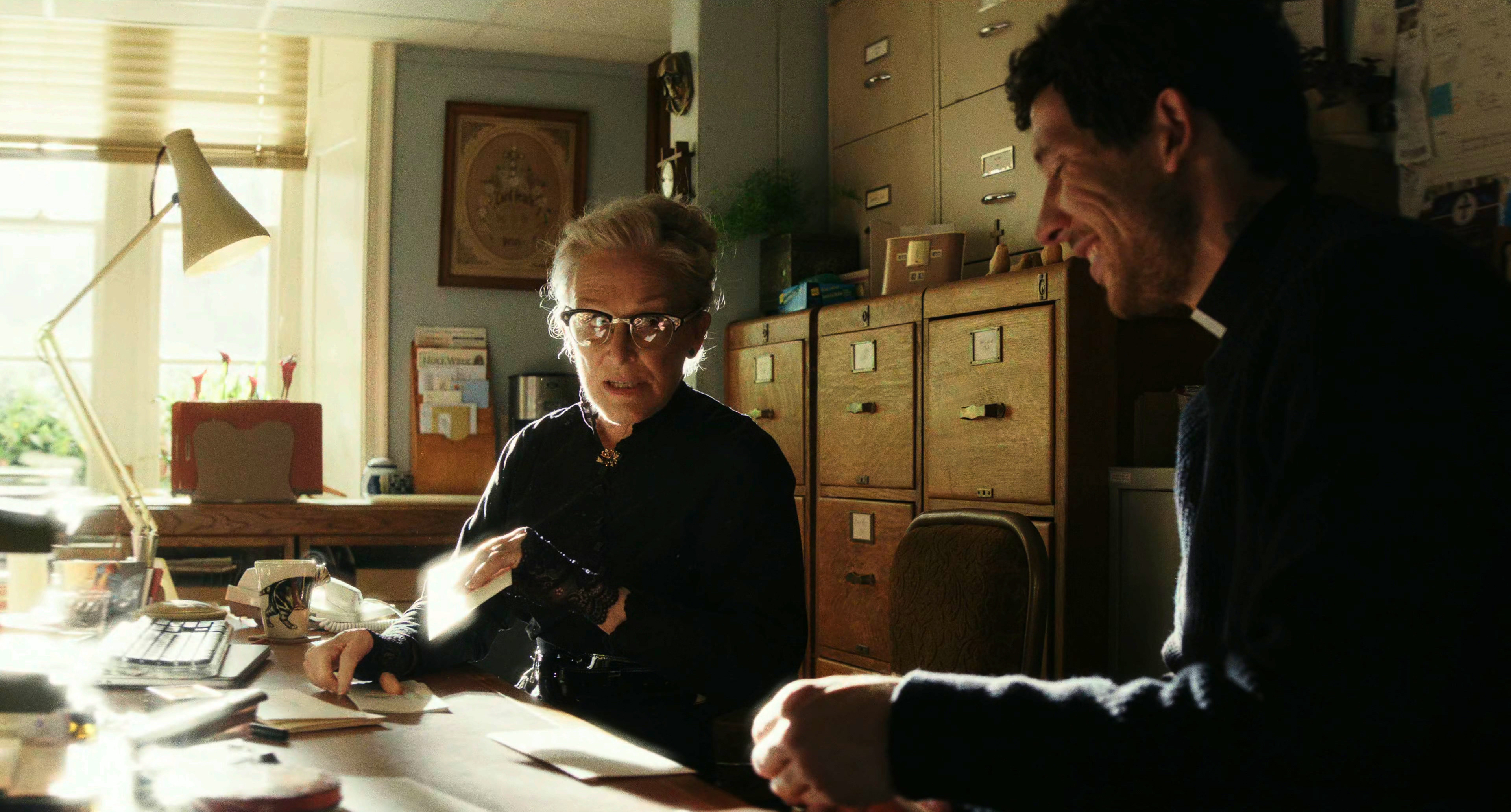 Отец Джад Даплентиси - без сомнений, главный персонаж картины. Он когда-то убил человека на ринге, после чего ударился в религию и изо всех сил замаливает свои грехи. Но этот внутренний зверь в нем время от времени прорывается, и это сыграно здорово. Нам с котом Бубликом не нравится актер Джош О’Коннор еще со времен "Претендентов" (прям по анекдоту - "Ну, не нравишься ты мне"), но нельзя не признать, что Джада он сыграл отлично, и этот персонаж - личность многогранная и непростая. И мы подумали, что с ним вполне возможно было сделать фильм о противостоянии Джада и монсеньора - безо всяких убийств. Потому что это само по себе могло быть интересным.