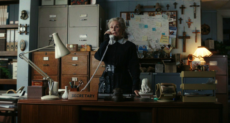 Гленн Клоуз в роли Марты Делакруа - замечательная совершенно. Актриса сама говорила в интервью, что обрадовалась, когда ее пригласили сыграть в третьем фильме франшизы, и она увлеченно работала над этим персонажем, тем более что она раньше никогда не играла подобные роли. Ее Марта - с одной стороны, человек вроде бы не слишком заметный, однако она - фанатичная, достаточно загадочная, и похоже, что ее побаивается сам монсеньер. Ну и в тихом омуте, как известно, черти водятся, хотя зря мы употребляем эту поговорку по отношению к такой богобоязненной персоне.
