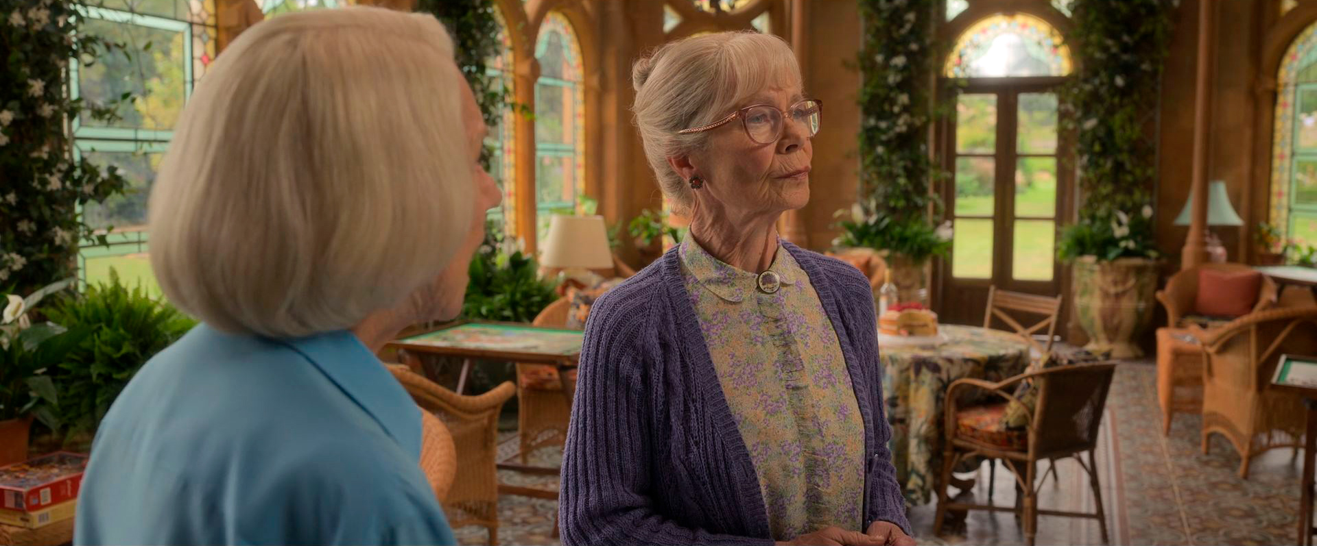Ну и новичок в их команде Джойс, которую сыграла Селия Имри, она все больше на подхвате: члены клуба используют ее медицинские познания, также Джойс на пенсии увлекается выпечкой вкуснейших тортов, которыми наслаждаются остальные трое. Но не сомневайтесь, полицейским также достанется по кусочку. Симпатичная роль, вполне достойная участница квартета, хотя и не такая яркая, как основная троица.