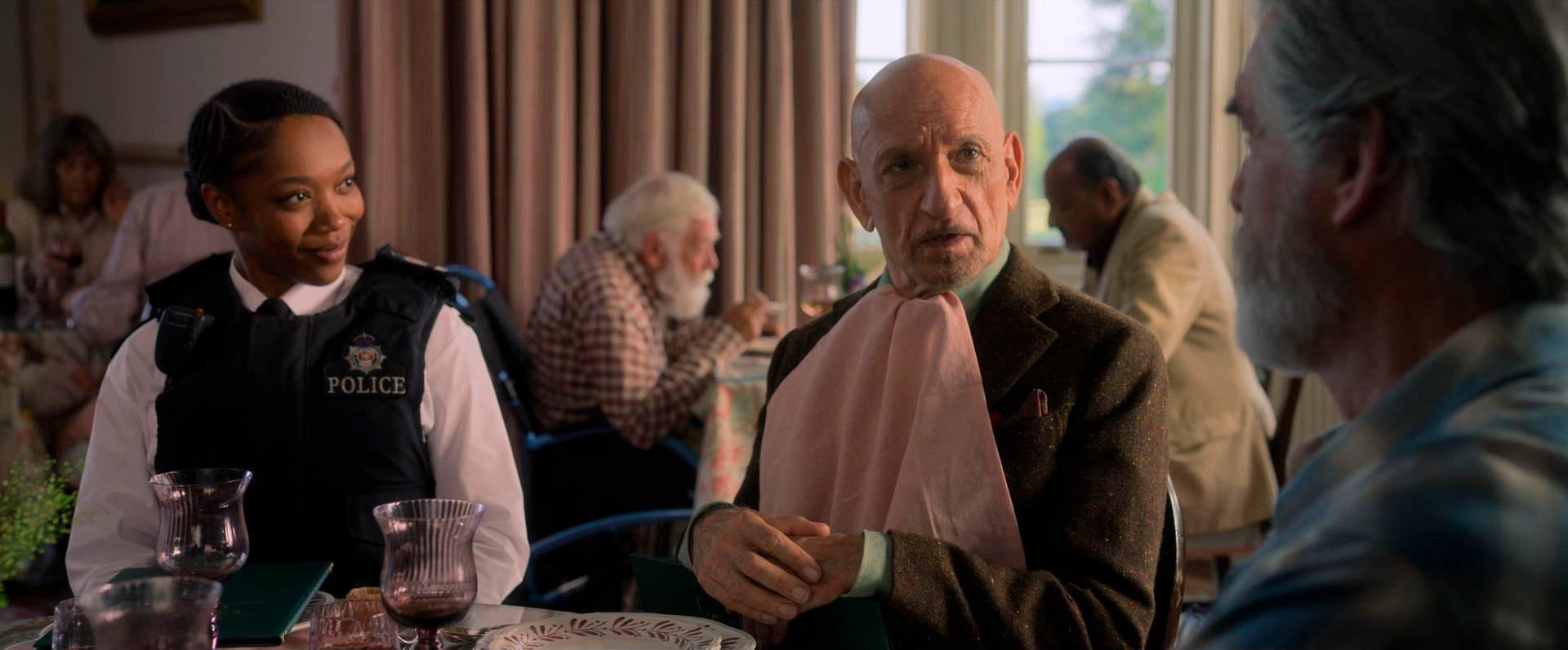 Персонаж Пирса Броснана Рон Ричи - ничуть не утративший прежнего обаяния пенсионер, вспоминающий свою предыдущую бурную жизнь, и не упускающий возможности снова "пошуметь": обитатели Cooper’s Chase будут защищать кладбище, и возглавлять всю эту движуху будет, конечно, Рон. Хорошая роль, и Пирс отлично смотрелся в ансамбле со всей четверкой. Также с ним был очень забавный момент, как Рон с Ибрахимом разыгрывали сцену, чтобы заставить полицейского инспектора Криса Хадсона приехать к ним в дом престарелых.