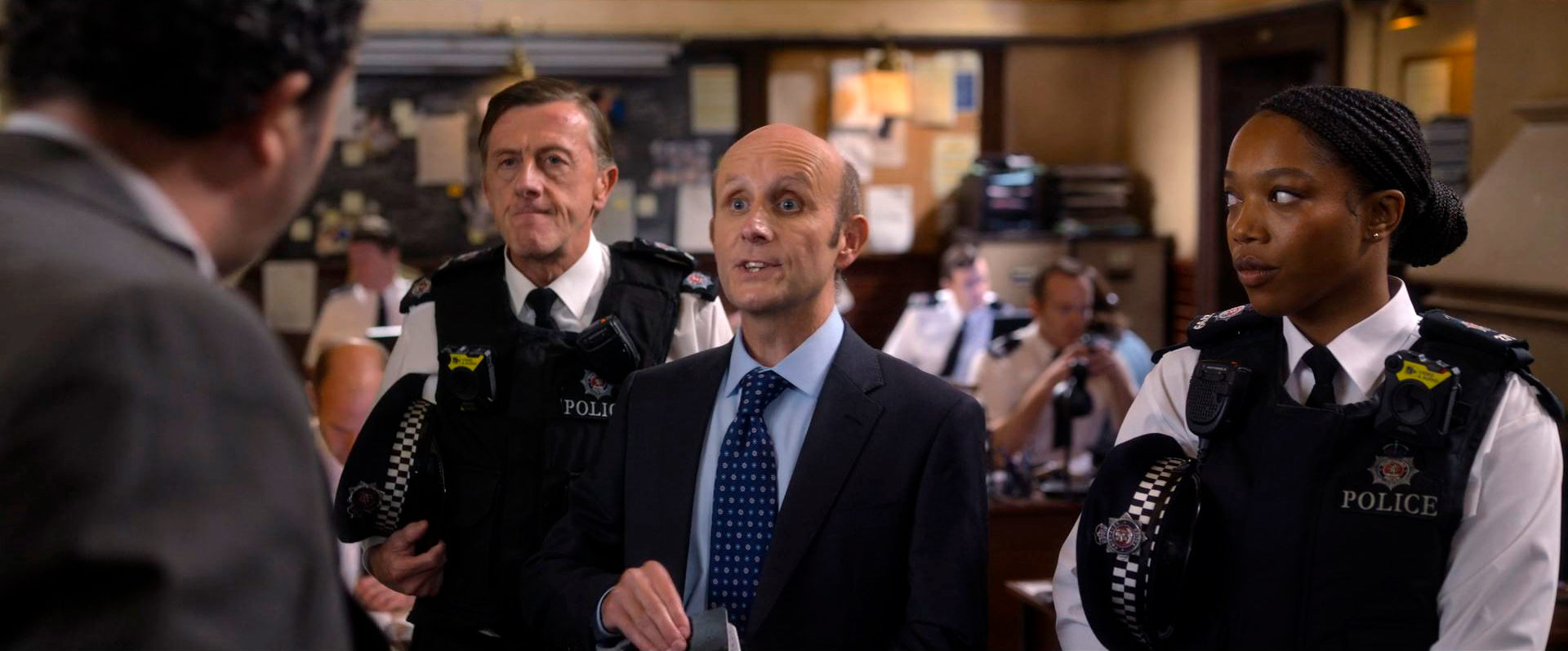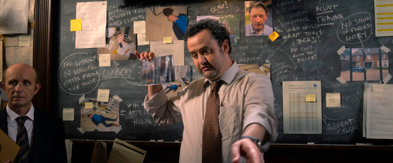 Еще один яркий второстепенный персонаж - это старший детектив-инспектор Крис Хадсон, которого сыграл Дэниэл Мейс. Я этого актера раньше совершенно точно видел в роли старшего детектива-инспектора и, напрягшись, вспомнил, где именно - в сериале "Дес", где, кстати, главную роль играл Дэвид Теннант. Там мне Мейс совершенно не понравился, мне показалось, что он не попал в типаж.