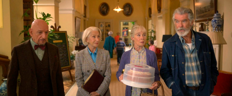Пирс Броснан, Хелен Миррен и Джефф Белл вместе играли в сериале "Гангстерленд", и мне там персонажи Броснана и Миррен (они играли мужа и жену) не понравились совершенно. А здесь они - очень хороши! Элизабет, которую играет Хелен, в этом клубе играет главную скрипку, она очень деятельна и прямолинейна, и у нее там периодически забавно всплывает ее спецагентское прошлое. Роль чудесная, очень понравилсь.