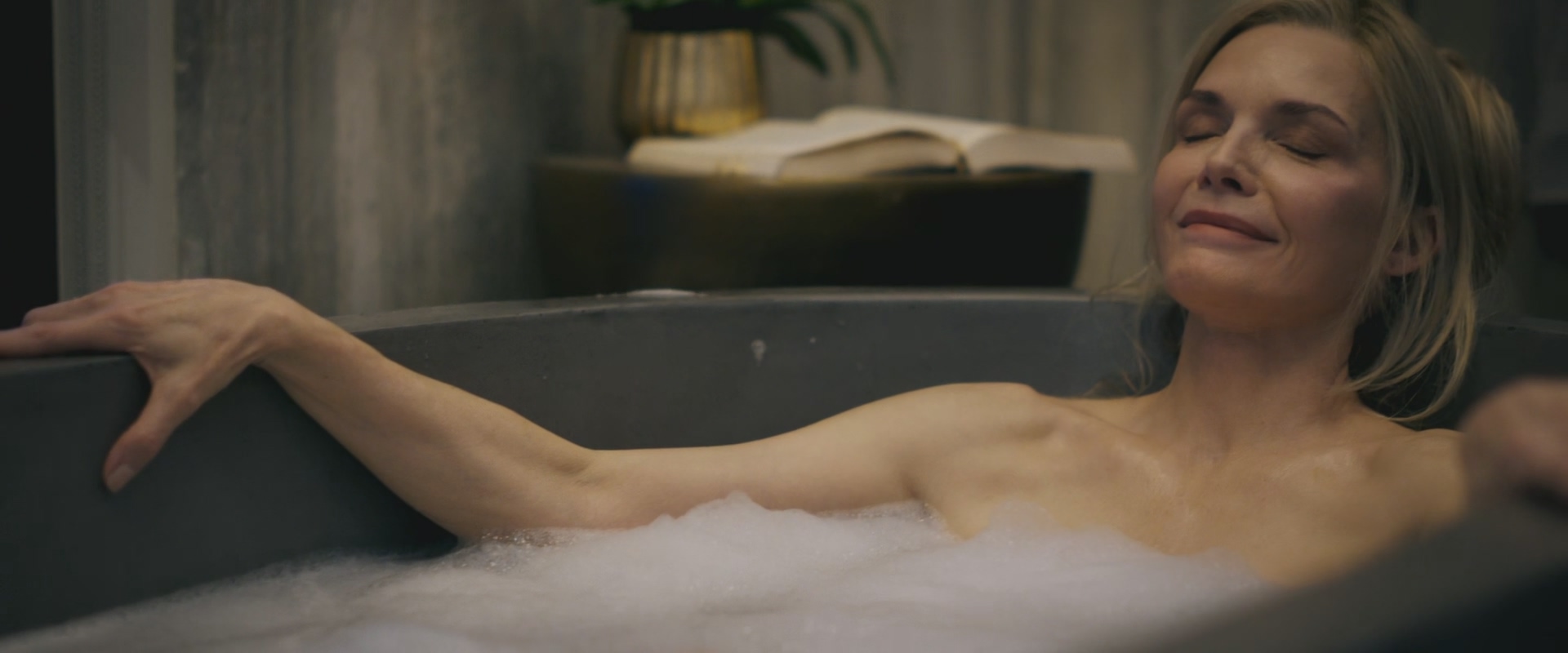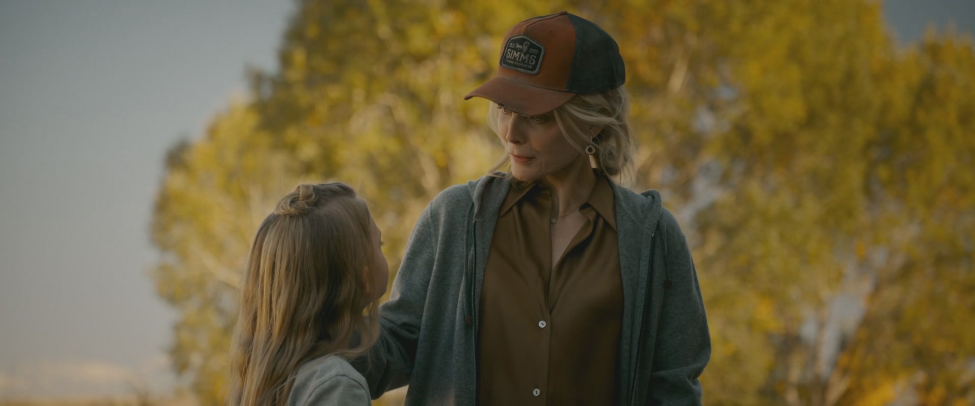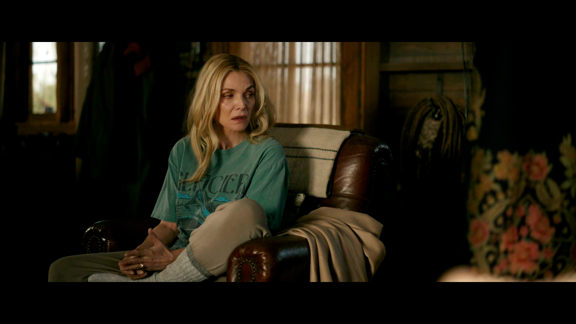 И Мишель Пфайфер здесь чудесная совершенно! Это очень серьезная и сильная актерская работа! Стейси находится в крайне тяжелом психологическом состоянии, при этом её еще и добивают тем, что требуют опознать труп мужа, а также прослушать его последние слова из самолета, записанные диспетчером, ей приходится заниматься решением чисто практических вопросов, у нее не все ладно во взаимоотношениях с дочерьми, и она вроде как от отчаяния принимает решение переселиться в эти места, но, похоже, что это решение довольно серьезное.
