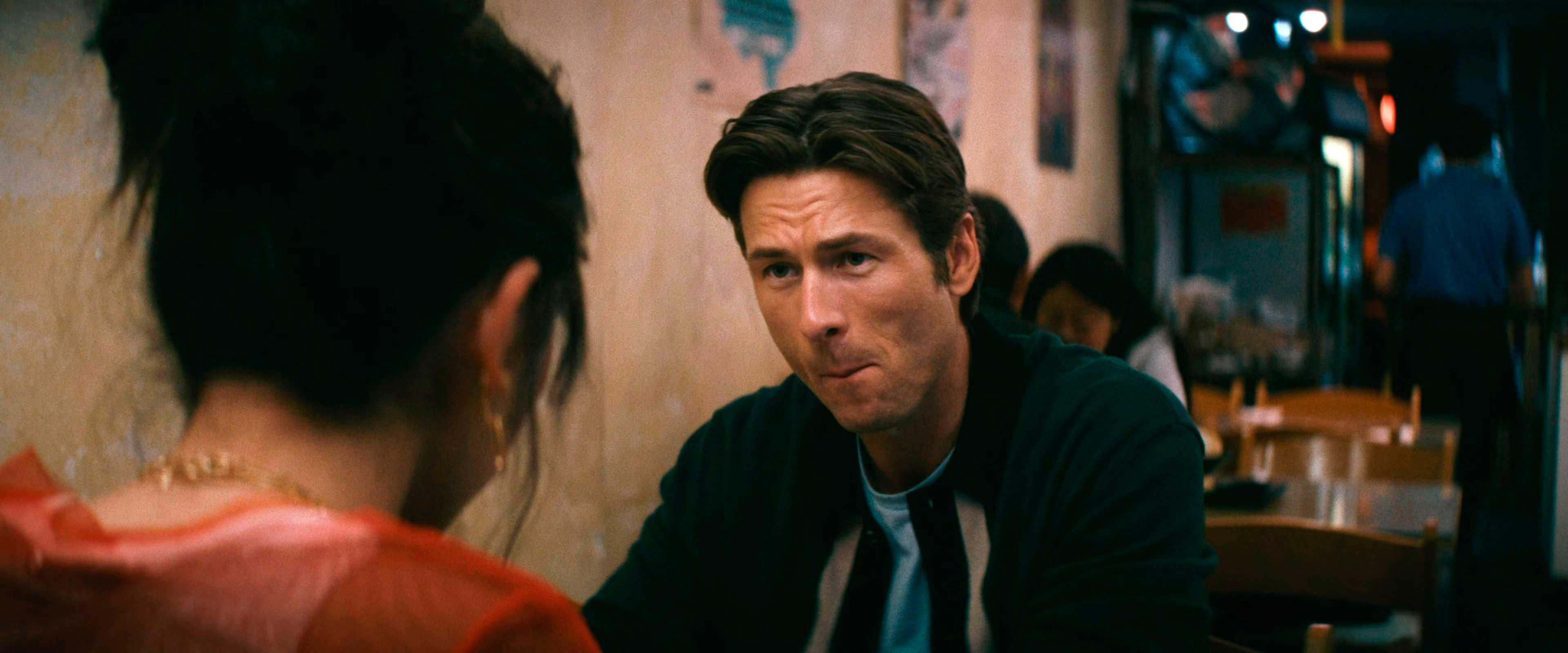 Гленн Пауэлл - актер неплохой, харизматичный и обаятельный, но несколько, скажем честно, однообразный. В "Я не киллер" у него был очень похожий типаж, а вот в недавнем "Бегущем человеке", где он должен был изображать персонажа, находящегося в постоянной неукротимой ярости, это смотрелось достаточно искусственно. Но улыбчивый и обаятельный киллер в этом фильме - оно тоже как-то не производило заметного впечатления - возможно, из-за выбранного тона постановки, который явно несколько странный.
