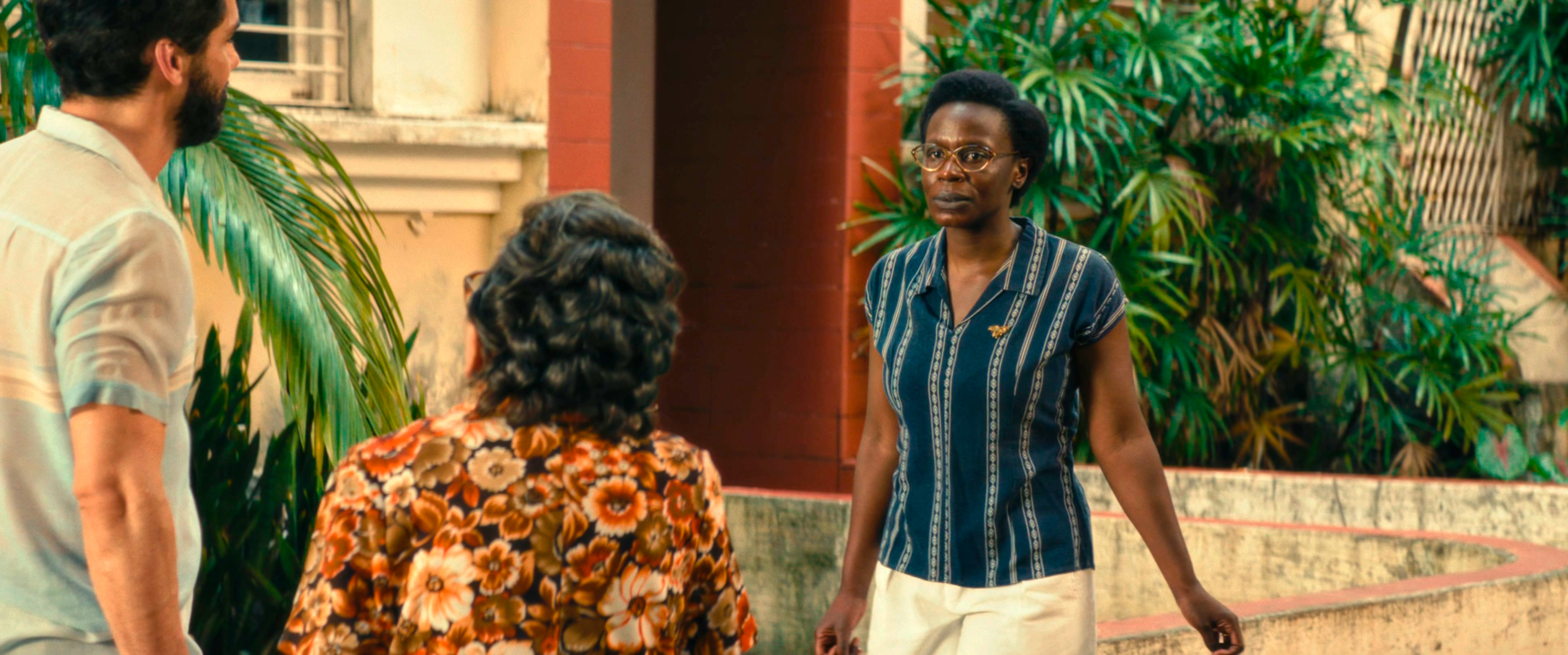 Но это такой сознательно выбранный прием: для Мендонсы главное - сделать так, чтобы зрители постепенно погрузились в обстановку тех лет и прочувствовали ее, и это сделано с большим мастерством. Мендонса, разумеется, хорошо знает эту эпоху и помнит ее досконально, и он это все воссоздает на экране - цвет, декорации, антураж, стиль съемки и стиль постановки - все на это работает, и это, скажу честно, производит очень серьезное впечатление, особенно если понимать, что вы, вообще говоря, смотрите.