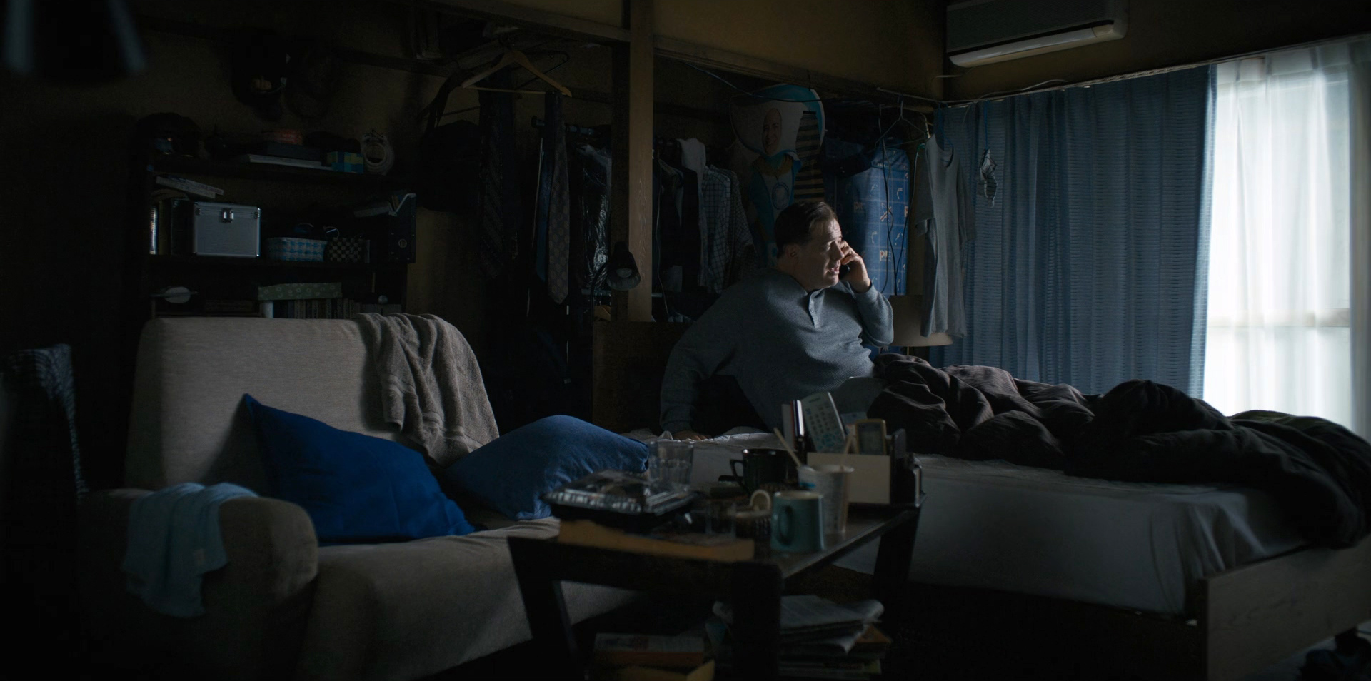 Да, мы не знаем его предысторию, в картине об этом почти не рассказывается. Мы не знаем, почему он совсем один, как он оказался в Японии, и почему он остался жить в этой стране, где иностранцу на порядок сложнее, чем в большинстве других стран. Ну, не знаем и не знаем, нас просто ставят перед фактом, это такой срез жизни. Герой поставлен в такие обстоятельства, он в них и существует, как может.