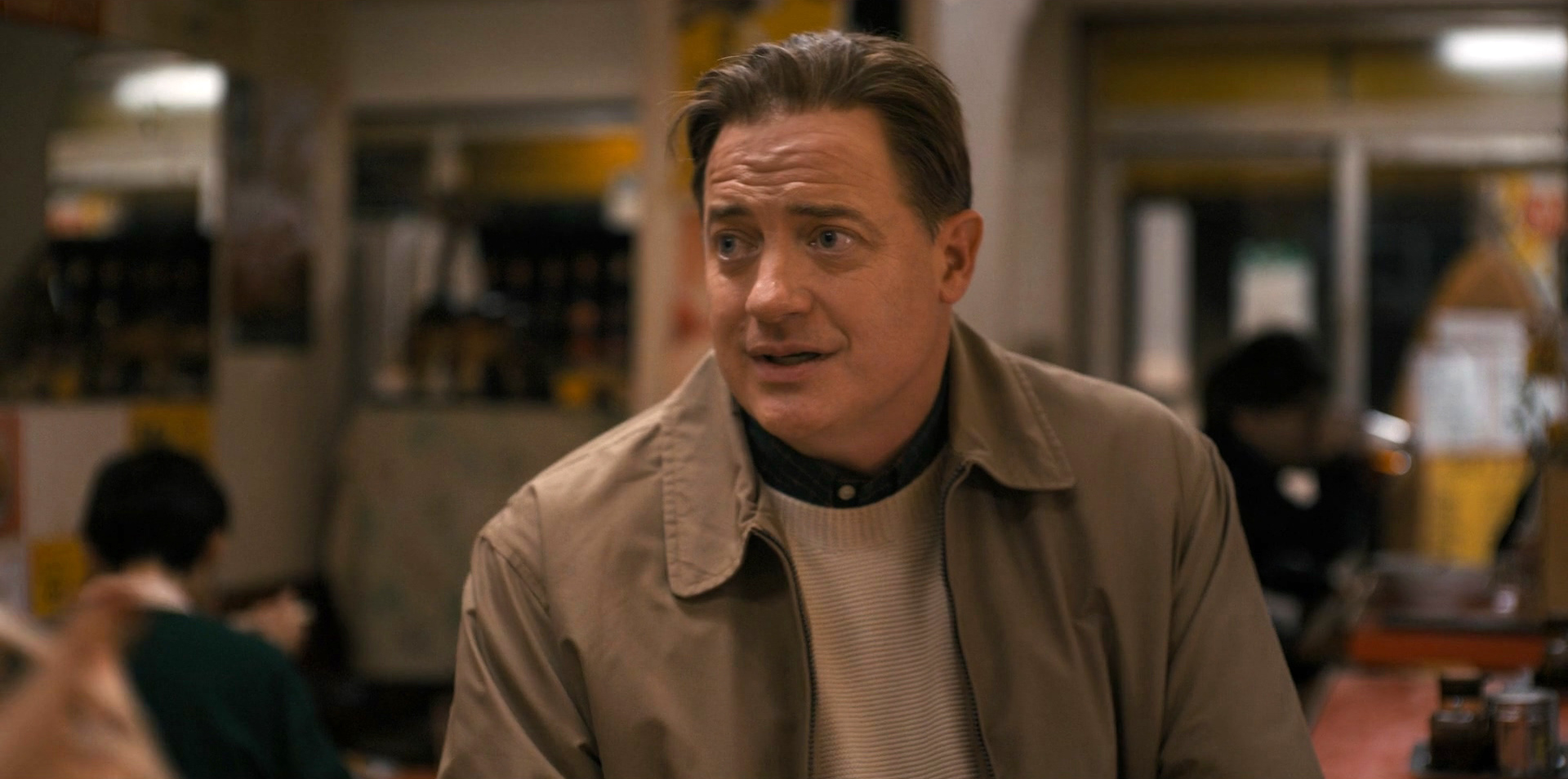 Брендан Фрейзер тут отличный, очень понравился. Ну да, Филлип тут по большей части достаточно грустный (цитирую господина главного кинокритика, "57-летний бывший звезда фильма "Мумия" кажется, имеет только три выражения лица: грустное, очень грустное и Добби, домашний эльф"). А чего ему веселиться-то? Актеру 57 лет, он совершенно одинок, живет в малюсенькой квартирке в чужой стране, берется за любую работу, пытаясь заработать хоть какую-то копейку. Ну, и где тут поводы для радости и веселья?