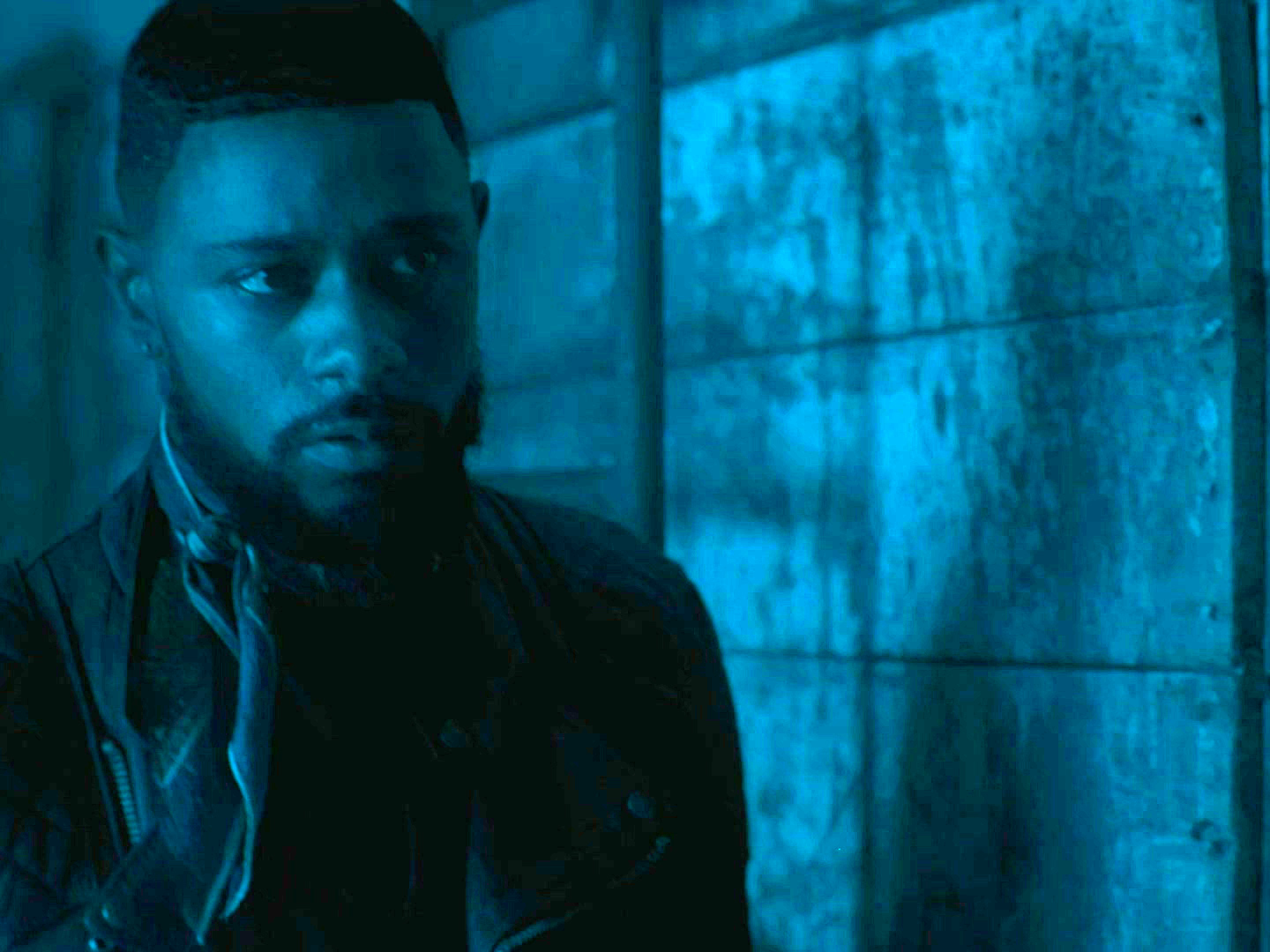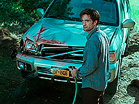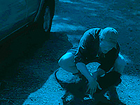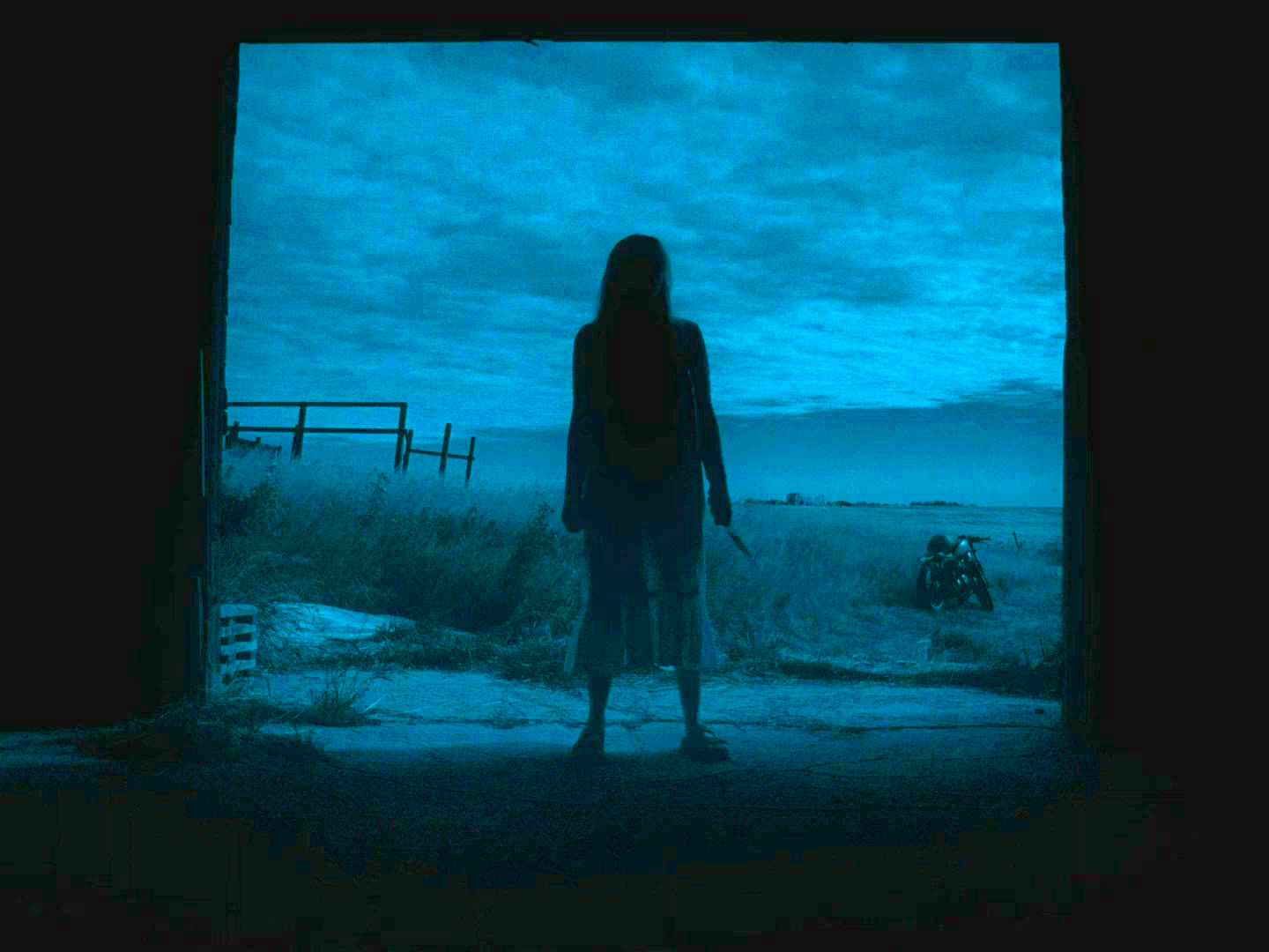 Грейс тоже по ночам временами куда-то ходит, и где-то в сарае встречает черного-пречерного мотоциклиста (Лакит Стэнфилд). У Грейс с собой большой кухонный нож (она с ним часто ходит - видимо, собирается порезать морковку), она протягивает нож мотоциклисту и требует, чтобы тот порезал себе губу. Тот режет губу и уходит в задумчивости.