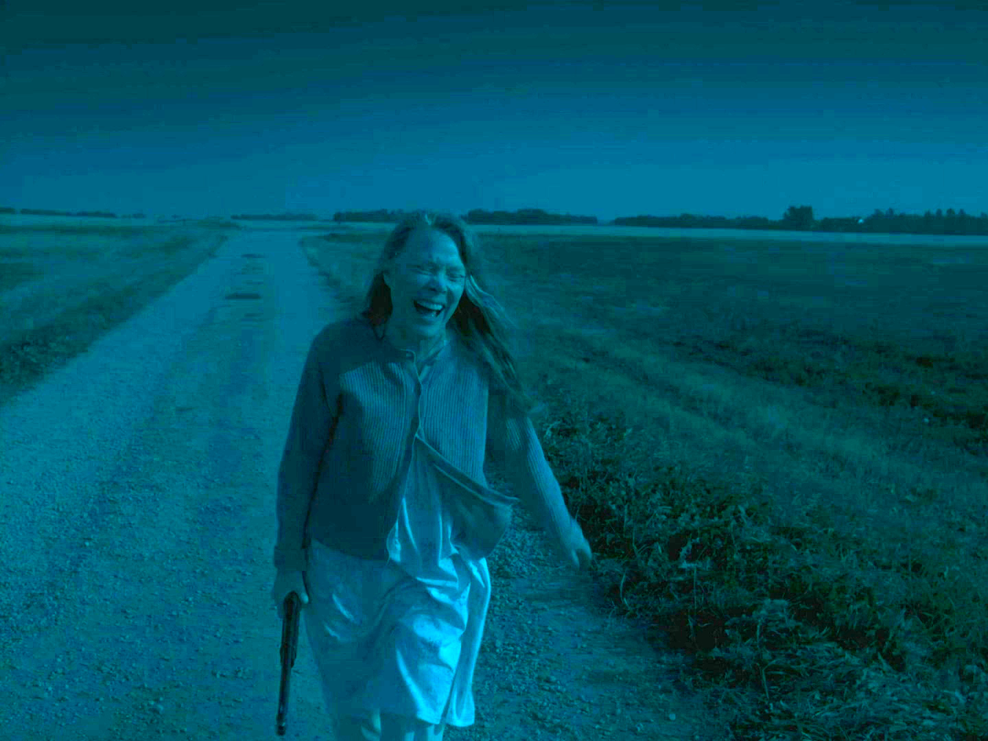 Дома Грейс абсолютно нечего делать, кроме передвижения на четвереньках и мастурбирования, и тогда она отправляется к гости к свекрови. Там выясняется, что свекр помер, а у свекрови есть его ружье, и она с ружьем ходит по ночам, сама того толком не понимая - лунатизм, говоря по научному, осложненный ружьем.